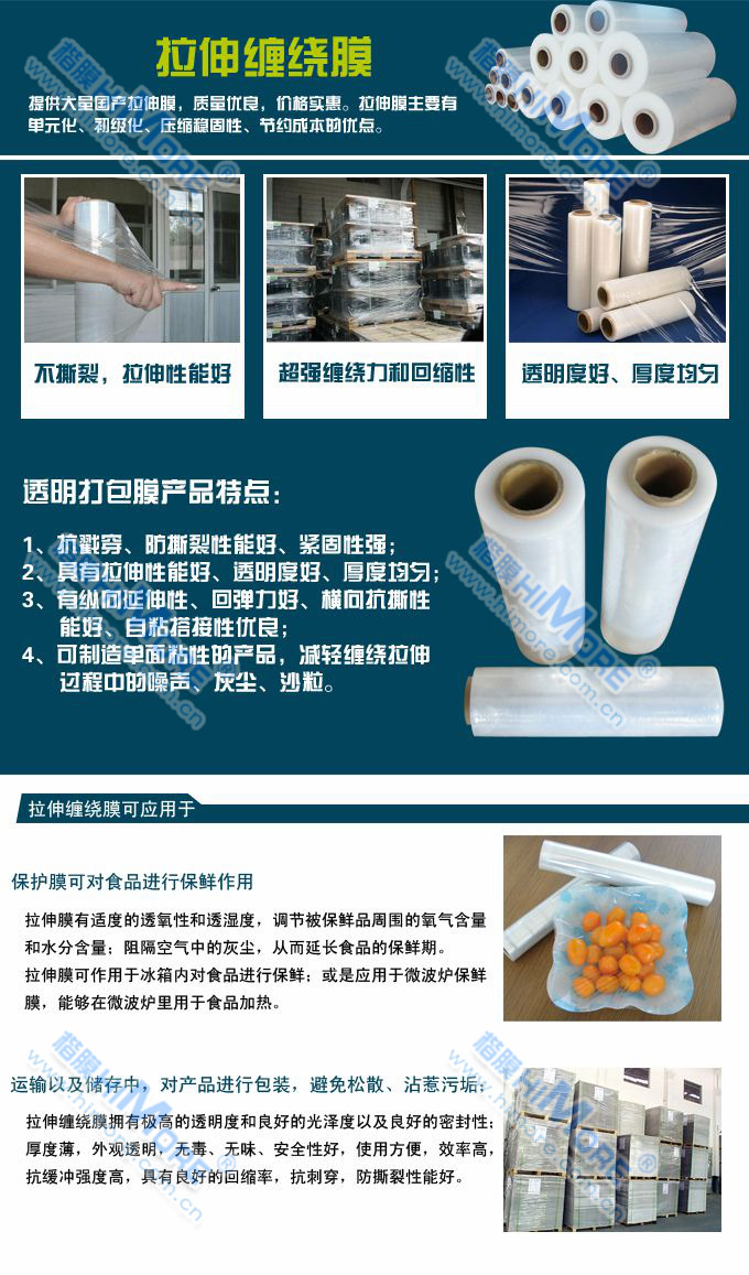 在外貿出口、造紙、五金、塑料化工、建材、食品醫藥行業被大量使用,是絕大部分產品的包裝使用膜。
